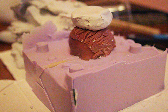 Next it was time to think about where we would be pouring in to. We chose the base of the head because it had less detail than the face or hair and therefore could be sanded off if need be later.